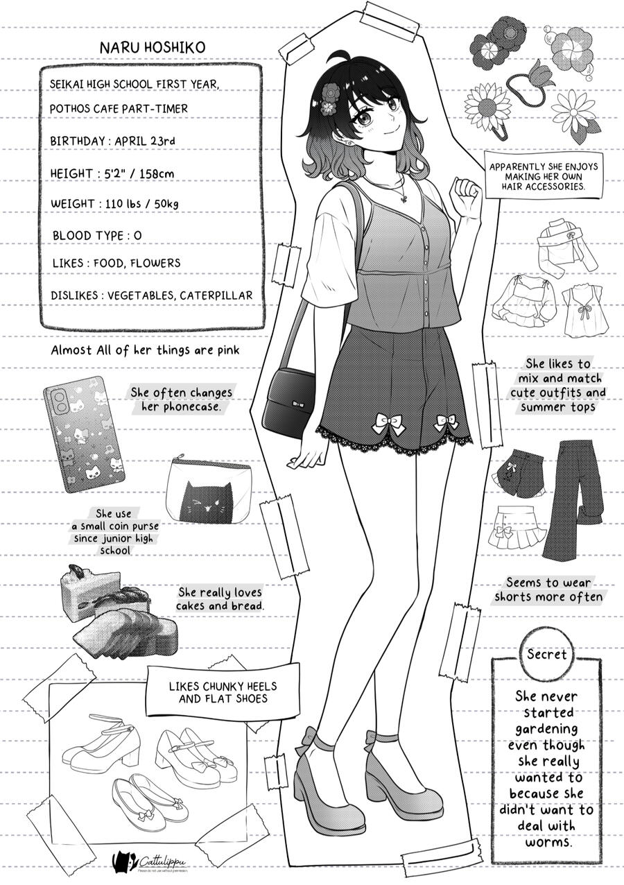 Naru adalah gadis yang cukup mungil, memiliki mata berwarna biru serenity. Rambutnya hitam dengan model beach waves bob dengan ombre berwarna dusty pink, rambut alami Naru memang sudah ikal dan berwarna hitam. Terkadang dia juga terlihat memakai hiasan rambut berupa jepitan yang seringnya ia buat sendiri. Naru juga tidak pernah lupa memakai dua pasang anting berwarna pink dan merah di masing-masing telinganya. Di telinga kanannya Naru memiliki 3 buah tindik.Untuk seragam sekolahnya, Naru biasa menggunakan sweater berwarna pink yang sedikit oversized, dia sangat jarang memakai blazer sekolahnya kecuali di hari-hari penting tertentu.Naru mulai memikirkan penampilannya setelah melihat Tsubakino dan memasuki SMA.